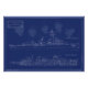 Unique blueprint poster of the U.S.S. The Sullivans Navy destroyer, currently open to the public in Buffalo, New York. This handsome blueprint features the outboard and inboard profiles of this historic warship with an iconic image of the five Sullivan brothers, tragically lost in the South Pacific in World War II, overlooking all. Historic image display piece perfect for home or office.