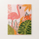 UA Jungle Flamingo II by June Erica Vess. A single flamingo is surrounded by up-close tropical greenery in a fun, bright colour palette.| 133079Z