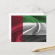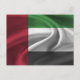 Postcard with the flag of UAE in wavy fabric style design. This design features the United Arab Emirates flag colours and design with a beautiful waving material textured effect. This flag design is a great way to show you are proud to be from UAE.