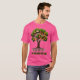 I give wanted to give this a 4 instead of a 5 because these Basic DARK T0shirts run unexpectedly SLIM or Narrow. Which is great if you do not have a potbelly, but I have a paunch. It isn't the shirt's fault that I've got a beer belly. The design and shirt itself is a quality cotton shirt. The color is more of a deep purple, but still a very pretty color. The Basic DARK T-shirts run a bit SLIMMER than the Basic Ts. The neck is a fraction narrower (or seems to be narrower) also. I'm a paunchy middle-aged woman and my neck is 12 inches (31cm) thick and the neckline fell about the same as in the photo of the man, and I had the desire to tug it a bit. So if you're a thick necked man or like loose shirts, be aware these are slimmer shirts. Once I get rid of my lockdown paunch it'll look great. The shirt washed well in cold water with no apparent bleeding. We don't have a dryer, so it hung dry. Did not shrink. Love the colors and the design. The design looks smaller on my shirt than it does on the model on-line. But still, it looks good on the shirt. The printing looks as it does on the model, just the size seems fractionally smaller. Washed garment in cold water, hung dry and design appeared unaffected.