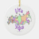Colourful map ornament of the Russian Federation with Ufa city location marked with a flag. City name also in Russian - Уфа́. Unique Russia family or adoption or Christmas gift for families with children from Ufa. Designed by Hendrika of www.RedThreadMaps.com