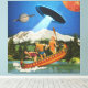 UFO Canoe Trip Mountains Surreal Collage Canvas Print