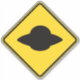 A yellow UFO crossing sign.