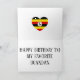This card is great fun and good quality. I loved the humour inside and on the back. There is the opportunity to change the orientation of this card from landscape to portrait, which I did. It is relatively straightforward to amend the typeface to fit the new orientation. It was well packaged with no plastic. The printing on this card is excellent.