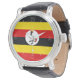 Uganda National Flag Elegant Patriotic Watch with the country flag in the national colours printed all over the watch. Watch numbers in the matching colours are placed over the flag colours. This splendid design will always keep you informed about the time and it looks gorgeous. What more to ask! © 2024 CountriesOfTheWorld
