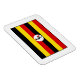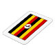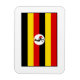 The Ugandan national flag has six horizontal bands, in red, yellow and black. In the centre of the flag is a white disc with a Grey Crowned Crane, which is the national symbol. It was adopted in 1962, and has a 2:3 ratio.