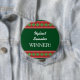 This Ugliest Sweater WINNER button features a dark green background accented with a Nordic knit design to look like an ugly Christmas sweater. The white customisable text reads: Ugliest Sweater WINNER!