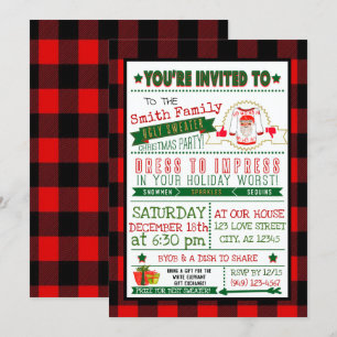 Red green ugly sweater Christmas party invitation