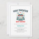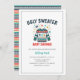 This design features an ugly Christmas sweater baby shower theme with a sweater illustration and sweater stripes pattern.