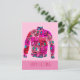A fun, brightly coloured ugly sweater design (we think it's quite funky!) in various shades of pink. The design has coloured lights draped across it and there is space to put the recipient's name. This can be left off or the font changed. The design sits on a pink background and this too can be changed as can the Christmas message.