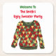 Paper coasters with a triangle ugly Christmas sweater design and personal message to coordinate with the party invites for an ugly sweater themed holiday party. Search in my shop for "Christmas" to see all of the Christmas-themed party supplies and the other designs that are available.