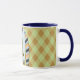 This pretty and cute mug features my original graphic art of an 'ugly sweater' with a Christmas tree on the sweater and striped sleeves. It was put on an argyle pattern in the background in gold-green color tones. It has a dark blue color inside it and on the handle. These are 11-ounce mugs, just the perfect size for your home brewed coffee or tea - or even hot chocolate! It would make a great gift, and you can put packets of coffee, tea bags or hot chocolate inside. One other gift idea is putting a little plant in it to make it extra special for your loved one. A fun Christmas Holiday gift for anyone.