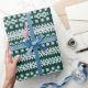 Ugly Sweater Green & White Faux Knitted Snowflakes Wrapping Paper