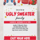 Ugly sweater invitation and vote card design features ugly sweaters and gold glitter confetti graphics (not real glitter). Personalise by typing your own wording over the sample text. You can also add other text (and personal photos). To access advanced editing tools, please go to “Personalise”, scroll down and press the "click to customise further" link. For more matching designs click the link “Other products from this collection”.