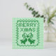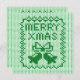 Green knitting pattern in ugly sweater style with jingle bells and Merry Xmas text