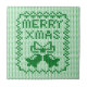 Green knitting pattern in ugly sweater style with jingle bells and Merry Xmas text