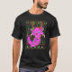 I give wanted to give this a 4 instead of a 5 because these Basic DARK T0shirts run unexpectedly SLIM or Narrow. Which is great if you do not have a potbelly, but I have a paunch. It isn't the shirt's fault that I've got a beer belly. The design and shirt itself is a quality cotton shirt. The color is more of a deep purple, but still a very pretty color. The Basic DARK T-shirts run a bit SLIMMER than the Basic Ts. The neck is a fraction narrower (or seems to be narrower) also. I'm a paunchy middle-aged woman and my neck is 12 inches (31cm) thick and the neckline fell about the same as in the photo of the man, and I had the desire to tug it a bit. So if you're a thick necked man or like loose shirts, be aware these are slimmer shirts. Once I get rid of my lockdown paunch it'll look great. The shirt washed well in cold water with no apparent bleeding. We don't have a dryer, so it hung dry. Did not shrink. Love the colors and the design. The design looks smaller on my shirt than it does on the model on-line. But still, it looks good on the shirt. The printing looks as it does on the model, just the size seems fractionally smaller. Washed garment in cold water, hung dry and design appeared unaffected.