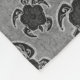 Tonal charcoal grey colorway. The "spirit" (uhane) of Hawaii is the beautiful green turtle (honu) that lives in the surf off the beaches in the south of the island of Kauai. Our honu has a primitive hibiscus flower on its back drawn in the style of an old Polynesian tattoo. Then we tossed our turtles on a faux linen texture and distressed the pattern with a batik effect. This design comes in several colorways.