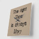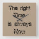Schöne Uhr mit einer schönen Botschaft: "Die richtige Zeit ist immer jetzt". Die Hintergrundfarbe ist veränderbar.
