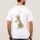 The front of this t-shirt bears a small British flag with its familiar white fimbriated regular and diagonal red crosses on a blue background, while the back displays a relief map of UK. Available on t-shirts, sweatshirts, polos, long-sleeves and more.