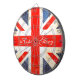 A unique antique style United Kingdom flag dart board in red, white and blue hues. Designed using the union jack, flag of Britain and adding a little vintage treatment. With the sporting and patriotic words Hope & Glory. Produced by Sarah Trett. Would look great in a UK patriotic bedroom or lounge.