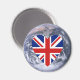 Cute magnet featuring a United Kingdom flag heart over an image of planet earth
