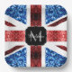 UK flag red and blue sparkles glitters Monogram Paper Plate