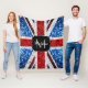 UK flag red blue white sparkles glitters Monogram Fleece Blanket