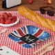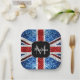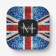 UK flag red blue white sparkles glitters Monogram Paper Plate