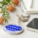 Reflection: The faint reflection of the blue circle below adds an elegant touch, suggesting depth and a polished surface.