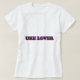 Black lettering with a purple outline spelling out UKE LOVER, along with a small red heart in the O.