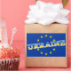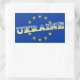 The State flag of Ukraine (blue and gold) has been used to form the word Ukraine. This has been placed on the blue flag of the European Union. The text is threaded through the 12 stars on the e.u. flag. As I draw this Russian troops have been deployed in large numbers in the Crimea region.
