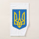 Patriotic Ukrainian coat of arms. Coat of Arms of Ukraine. Lesser Coat of Arms of Ukraine, the so called Tryzub. A stylised trident symbol in gold on a background shield of blue.