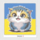 Adorable Sticker with Ukraine Flag and Cute Kitten.