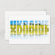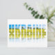Ukraine text composed of yellow field with blue sky with text reflection in water