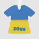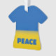 Peace on one side and the year on reverse on a blue and yellow Christmas ornament to show support for peace in Ukraine.