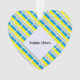 The blue and yellow Ukrainian Flag, with the word UKRAINE underneath, in the colours of the flag. Design is tiled for artistic effect. A white fractal of squiggly squares holds a place for your name for a personalised touch. Or, create a customised gift by adding someone else's name