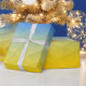 Ukraine yellow blue geometric mesh pattern wrapping paper
