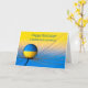 Ukrainian Birthday card in blue and yellow, bilingual with English and Ukrainian.