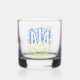 Ukrainian emblem trident tryzub scattering hearts whiskey glass