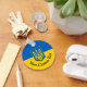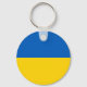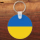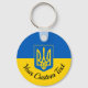 Keychain with the flag of Ukraine, a blue and yellow flag with the Ukrainian coat of arms (emblem) with a trident in the centre, and a custom text template for your message