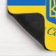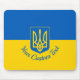 Mousepad pad with the flag of Ukraine, a blue and yellow flag with the Ukrainian coat of arms (emblem) with a trident in the centre, and a custom text template for your message