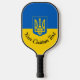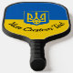 Ukrainian flag with coat of arms and custom text pickleball paddle