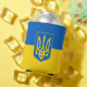Can cooler with the flag of Ukraine, a blue and yellow flag with the Ukrainian coat of arms (emblem) with a trident in the centre