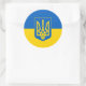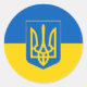 Round sticker with the flag of Ukraine, a blue and yellow flag with the Ukrainian coat of arms (emblem) with a trident in the centre