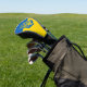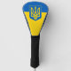 Golf head driver cover with the flag of Ukraine, a blue and yellow flag with the Ukrainian coat of arms (emblem) with a trident in the centre