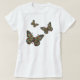 The wings, body, and antennae of a monarch butterfly are decorated with patterns found in pysanka, a traditional Ukrainian method for decorating Easter eggs. These include geometric patterns, plant motifs, and designs based on man-made agricultural objects in shades of red, orange, green, blue, dark grey, and white. This design is great for both light and dark clothing.