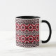 Ukrainian traditional vushuvanka folk pattern coffee mug. Red and black colour pattern.
