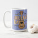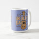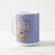 This holiday mug features a ukulele in the center on an a blue background. The text reads UKULELE DAY. Around the ukulele are decorative star shapes adding a festive touch to the design. Ukulele Day is a holiday celebrated on February 2nd. The ukulele is illustrated with attention to detail, including its strings, fretboard and soundboard. The mug is a classic mug. This mug is a fifteen ounce mug. The mug is microwave and dishwasher safe.