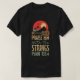 I give wanted to give this a 4 instead of a 5 because these Basic DARK T0shirts run unexpectedly SLIM or Narrow. Which is great if you do not have a potbelly, but I have a paunch. It isn't the shirt's fault that I've got a beer belly. The design and shirt itself is a quality cotton shirt. The color is more of a deep purple, but still a very pretty color. The Basic DARK T-shirts run a bit SLIMMER than the Basic Ts. The neck is a fraction narrower (or seems to be narrower) also. I'm a paunchy middle-aged woman and my neck is 12 inches (31cm) thick and the neckline fell about the same as in the photo of the man, and I had the desire to tug it a bit. So if you're a thick necked man or like loose shirts, be aware these are slimmer shirts. Once I get rid of my lockdown paunch it'll look great. The shirt washed well in cold water with no apparent bleeding. We don't have a dryer, so it hung dry. Did not shrink. Love the colors and the design. The design looks smaller on my shirt than it does on the model on-line. But still, it looks good on the shirt. The printing looks as it does on the model, just the size seems fractionally smaller. Washed garment in cold water, hung dry and design appeared unaffected.